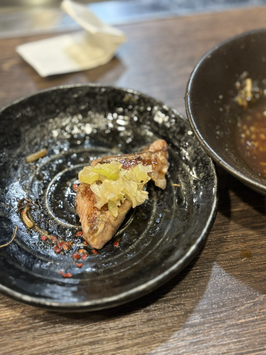 焼き上げた後にネギだれを食べる。めちゃくちゃあう。
